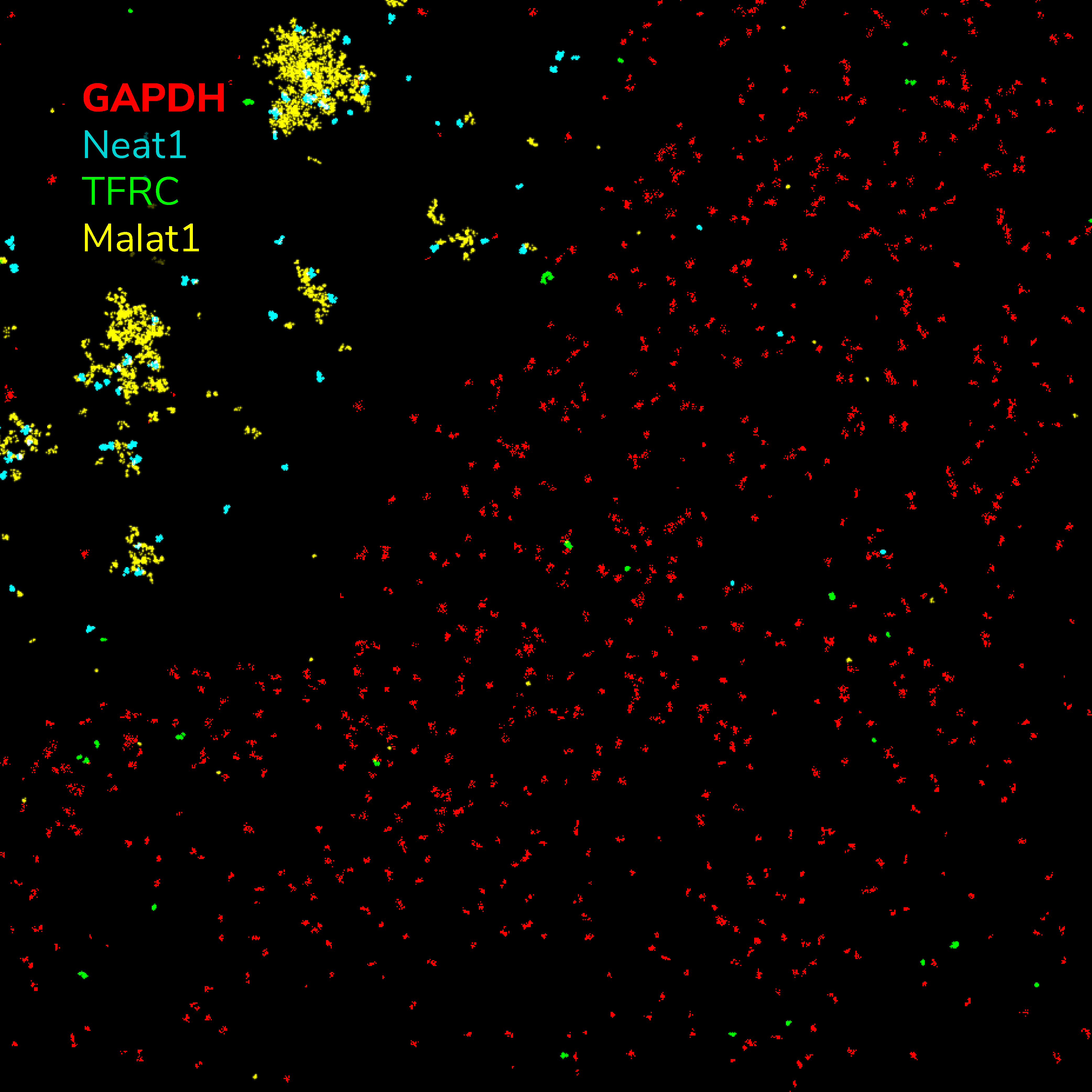 This kit enables DNA-PAINT super-resolution imaging of GAPDH (NM_002046.7), a housekeeping gene that is highly expressed throughout the cell. Each GAPDH probe contains one F1 docking strand and up to 30 probes bind per GAPDH RNA for robust signal amplification.